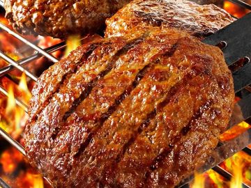 Flame-grilled burger topped with smoked cheddar, crisp bacon, and house sauce