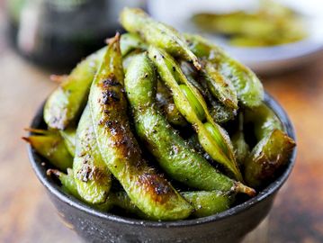 Tender young soybeans, steamed and kissed with smoked sea salt
