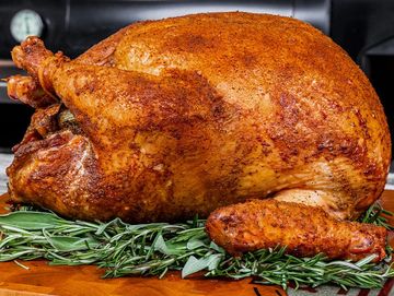 A whole turkey herb-crusted and stuffed with local apples, onions, and citrus then bronzed to tender perfection