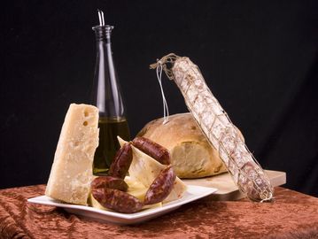 A collection of artisan cheese and smoked meat options.